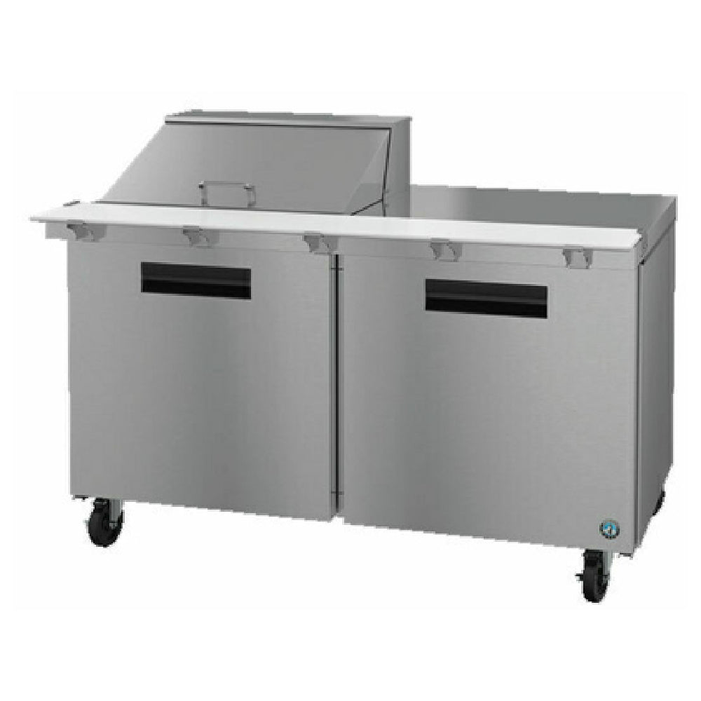 The Hoshizaki SR60B-12M Steelheart Series Mega Top Refrigerator is a reliable, two-section reach-in prep unit designed for commercial kitchens that need efficient ingredient storage and durable construction. With a 60" width, two solid doors, and a 12-pan mega top configuration, this unit is ideal for sandwich prep, salad stations, pizza assembly, and high-volume foodservice operations requiring organized and accessible cold storage.
