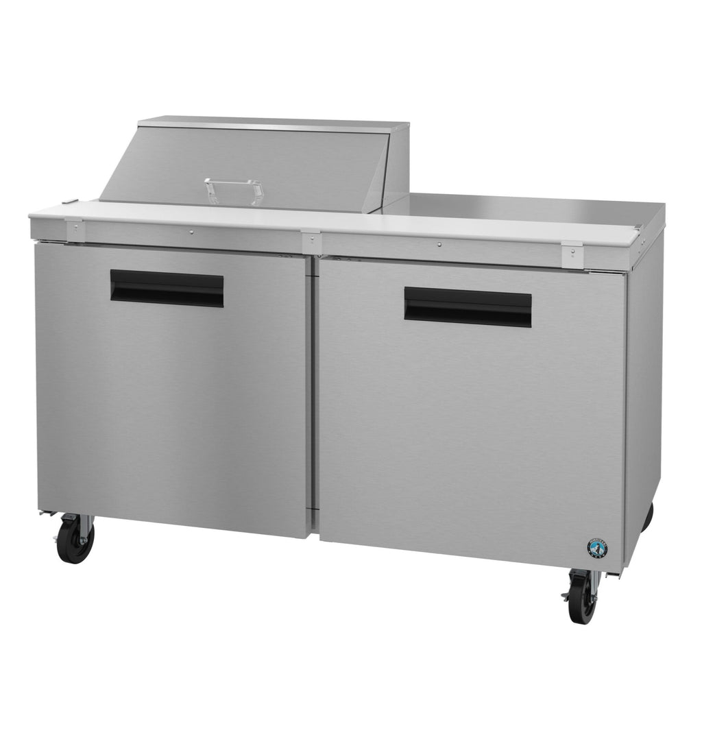The Hoshizaki SR60B-8 Steelheart Series Sandwich Top Refrigerator is a durable, two-section reach-in prep table designed for commercial kitchens that require dependable refrigeration and efficient ingredient organization. With its 60" width, dual solid doors, and an 8-pan sandwich top capacity, this unit is ideal for delis, sandwich stations, salad preparation, and streamlined foodservice operations.