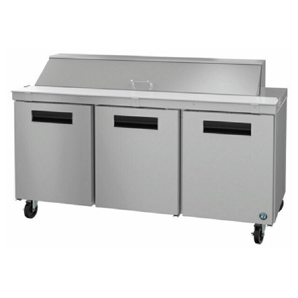 The Hoshizaki SR72B-18 Steelheart Series Sandwich Top Refrigerator is a high-capacity, three-section reach-in prep solution designed for demanding commercial kitchens. With a spacious 72" width, three solid doors, and an 18-pan sandwich top configuration, this unit provides exceptional ingredient storage and easy access—perfect for delis, sandwich shops, salad stations, and high-volume foodservice operations.
